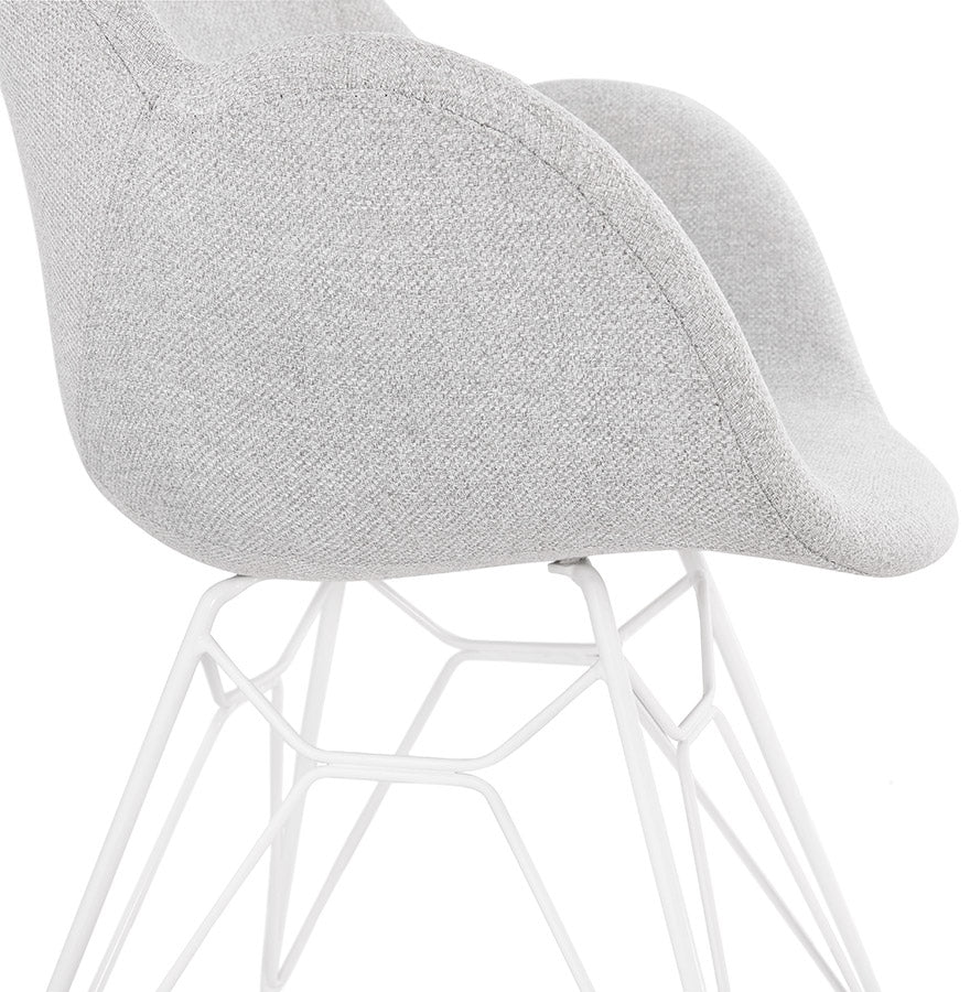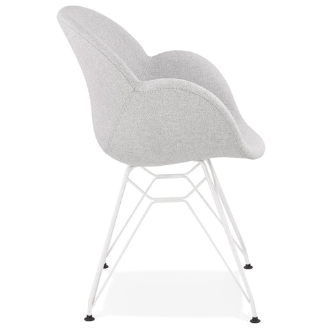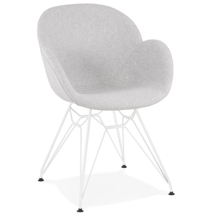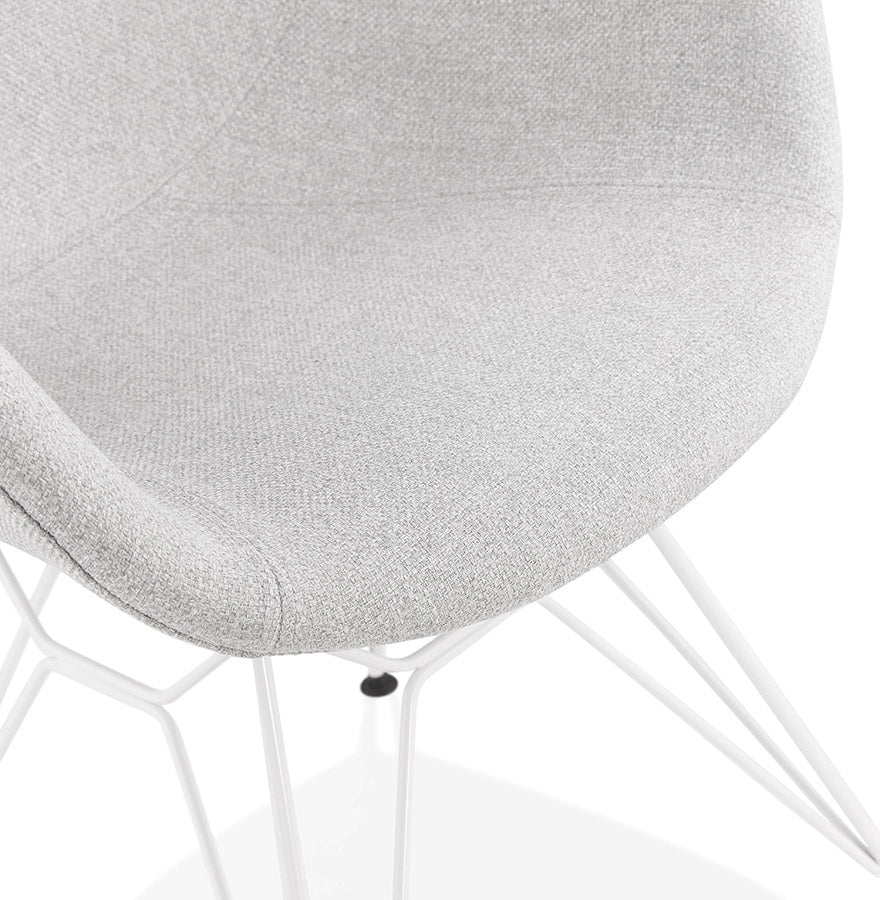 Modern chair 'ATOL' in light gray fabric with white metal base